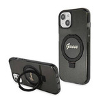 Guess Ring Stand Script Glitter MagSafe - Etui iPhone 15 (czarny) (GUHMP15SHRSGSK)